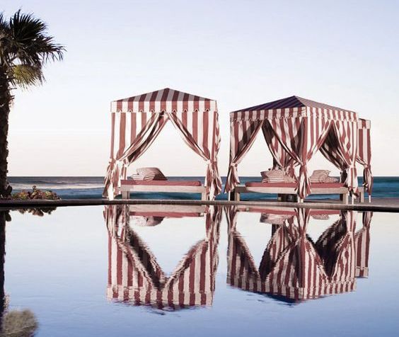 Сейчас мы уже готовы похвастаться большим спектром работ в наших материалах: подушки для садовой мебели и лежаков, качели, беседки, портьеры на террасах, оформление пляжных зон и зон у бассейна, а также многое другое.