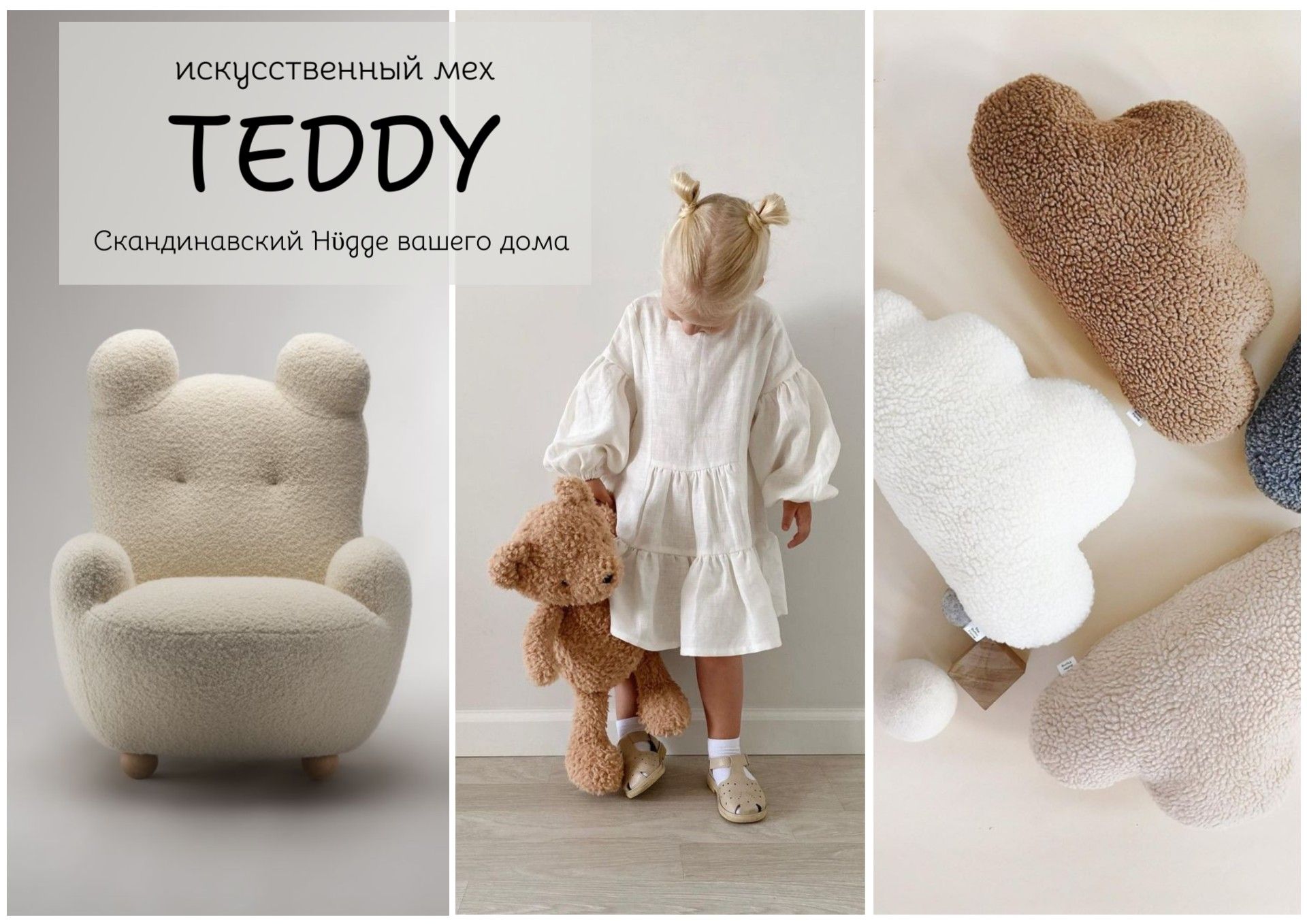 Описание Порой хочется чего-то мягкого и согревающего, при этом еще красивого и актуального. Что выбрать? Конечно, популярный искусственный мех Teddy – он имеет лаконичную колор-карту в теплой бежево-терракотовой гамме с оттенками холодного серого и розового. А также шикарную фактуру с мягкими колечками завитками и невероятным шелковистым тактильным эффектом, почти как шубка того самого плюшевого медвежонка из детства. Долгое время считалось, что для искусственного меха наиболее гармоничным является стиль сканди, ведь именно там в светлых, но несколько холодных интерьерах порой так не хватает фактуры и тепла. И уже давно визитной карточкой скандинавского стиля стал тот самый пушистый меховой пуфик, который, кстати, снискал такую любовь, что сделал искусственный мех уместным и желанным буквально в любом доме и интерьере, в комнатах взрослых и детей. По техническим показателям коллекция Teddy не уступает хорошим микровелюрам. Имеет качественную тканую подложку, силиконизированный ворс (для наиболее приятных тактильных ощущений и большей износостойкости), хорошую плотность и высокие показатели износостойкости – 90 тысяч циклов по Мартиндейлу. А значит искусственных мех Teddy можно успешно использовать как для изготовления домашней мебели, так и для проектов в коммерческом сегменте.